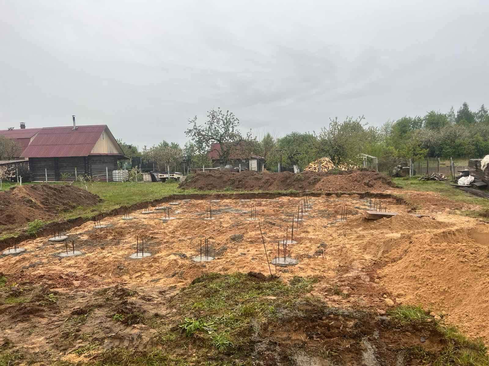 - Проводится подготовка поверхности под возведение стен, устраняется возможный строительный мусор.